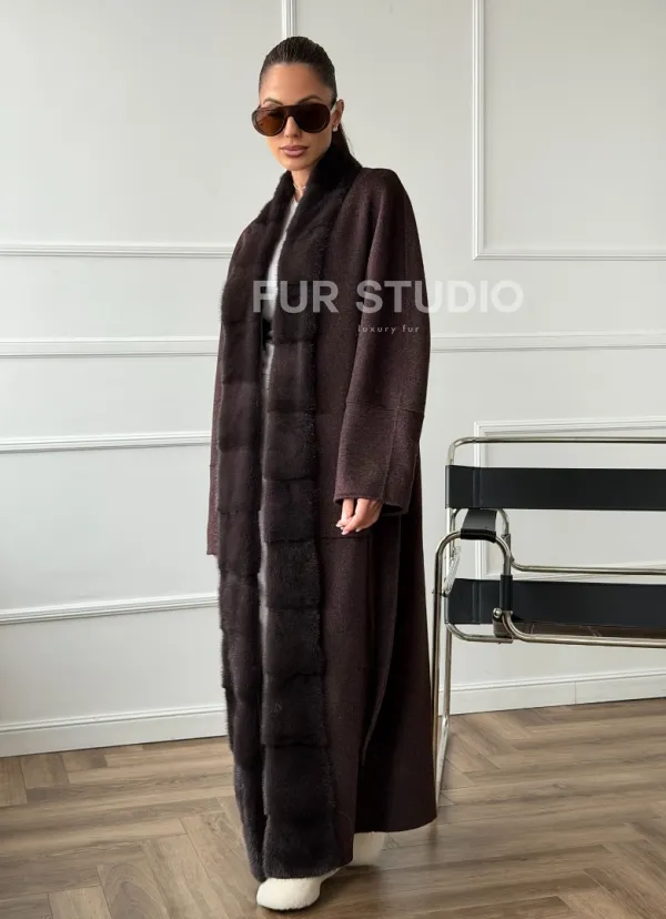 Длинное демисезонное пальто с мехом норки 102673