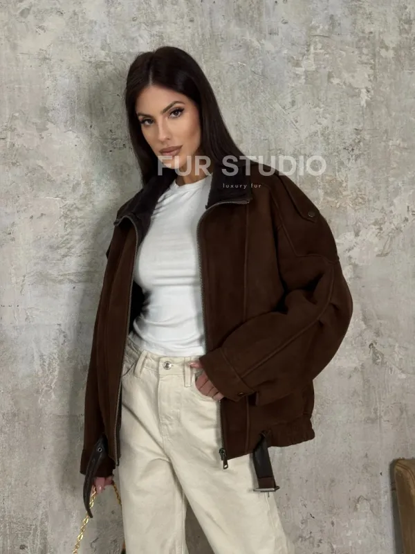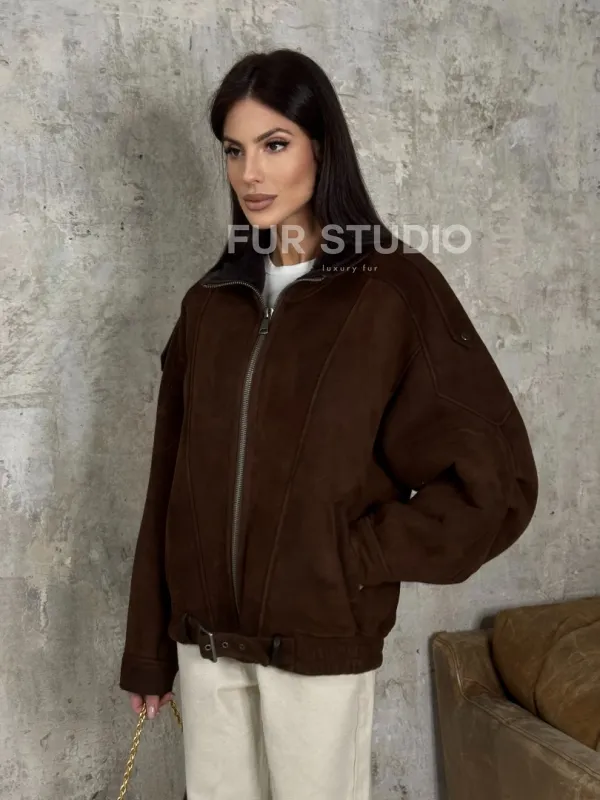 Дубленка - бомбер на молнии из овчины MERINO 101714