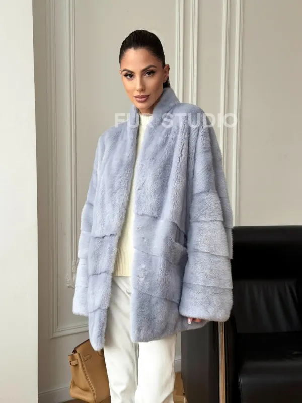 Голубая норковая шуба - жакет доступна для покупки в нашем шоуруме Furs Studio в . У нас так же есть доставка во все города России. Добавьте немного роскоши в свой гардероб с этой шубой, которая будет служить вам многие годы.