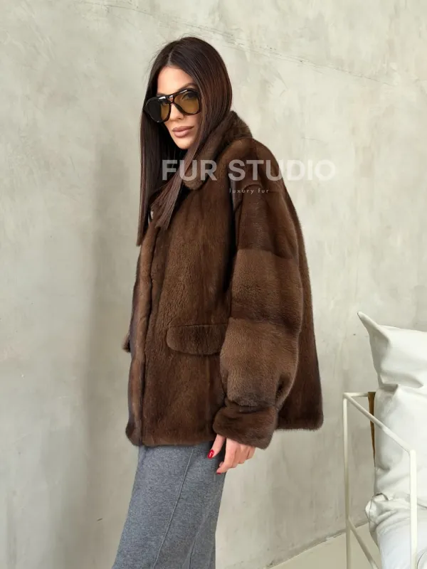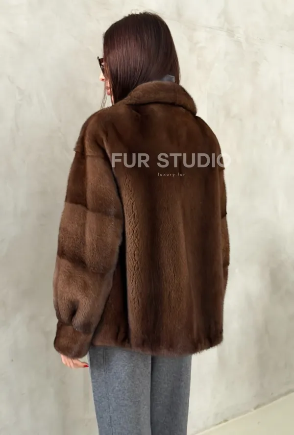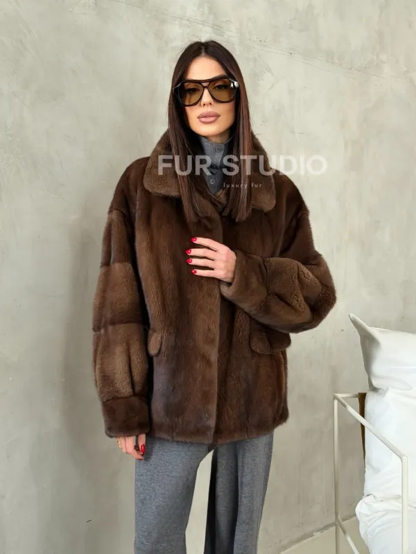 Мех данной шубы аукционная норка, цвет коричневый. Предлагается в размерах от 42 до 50. Длина модели 65-70 см, что выгодно подчеркивает фигуру девушек. Эта модель идеально подойдет для девушек и женщин, предпочитающих роскошные натуральные меха.