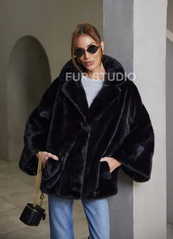 Норковый жакет роспуск - английский воротник -черный 100774