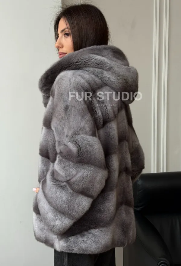 Норковый полушубок с капюшоном - цвет Platinum 102567