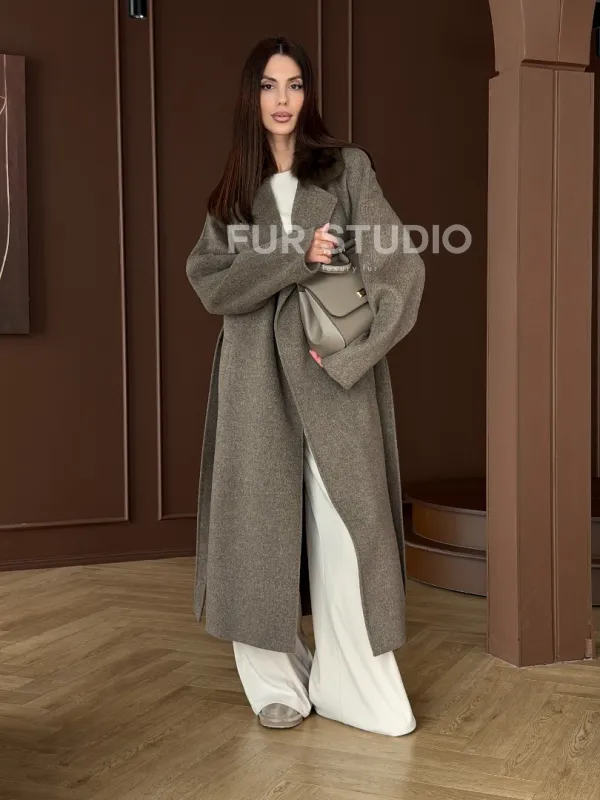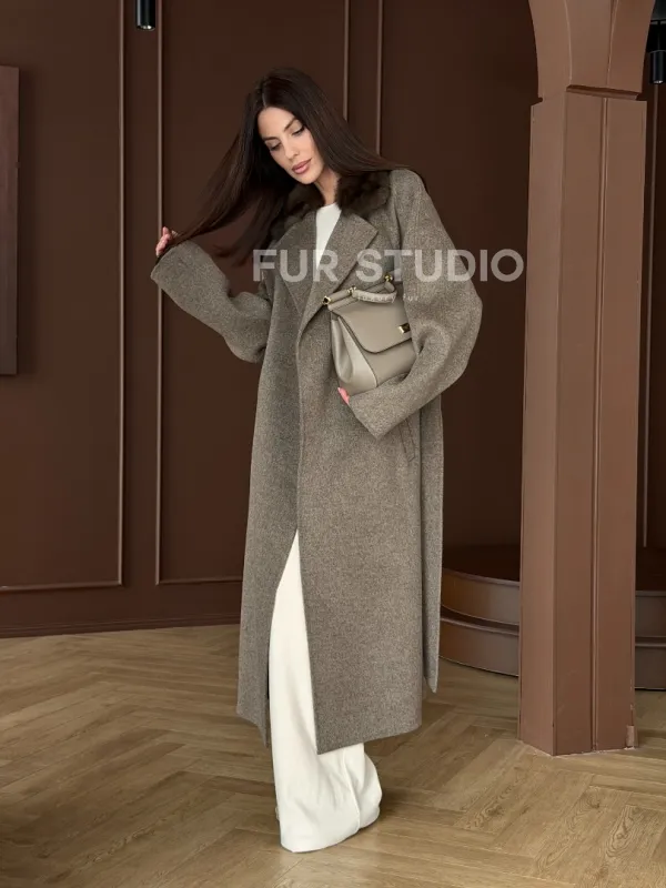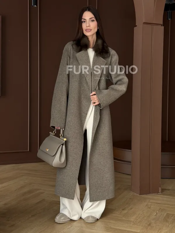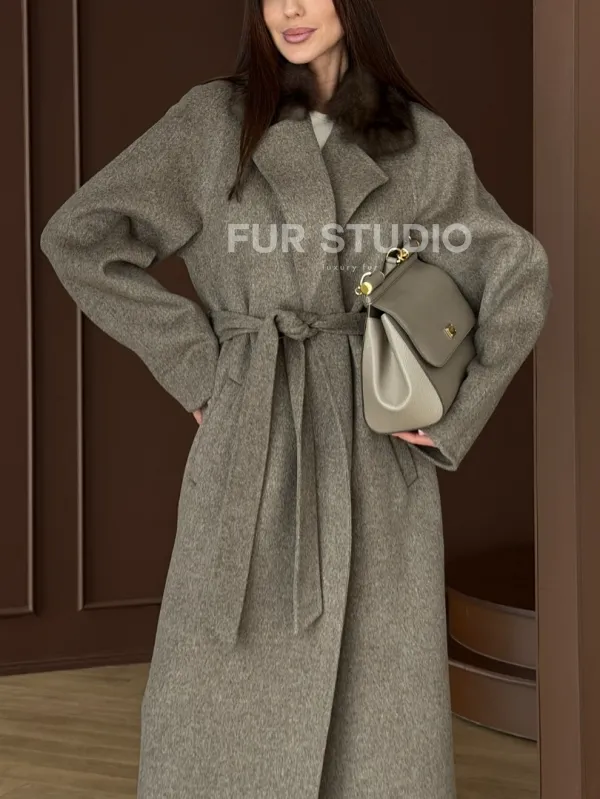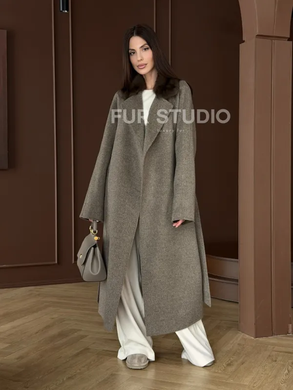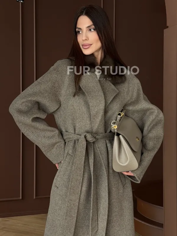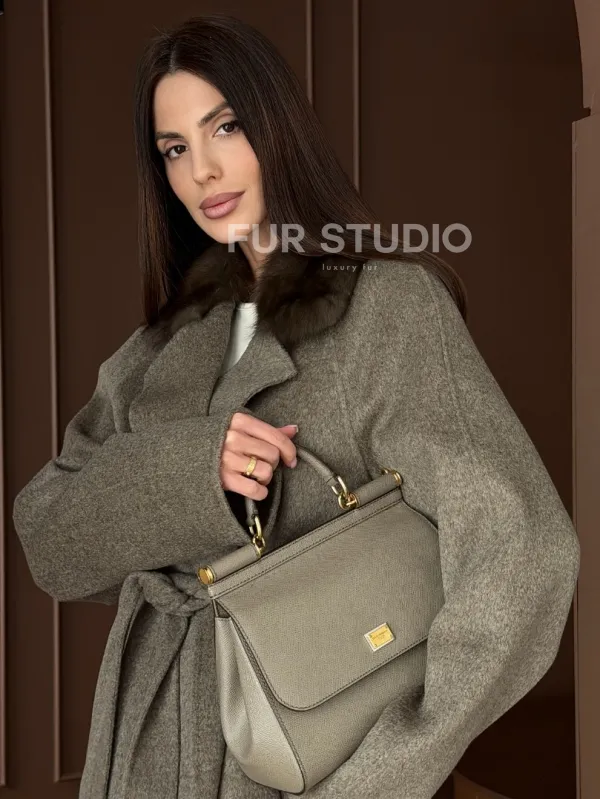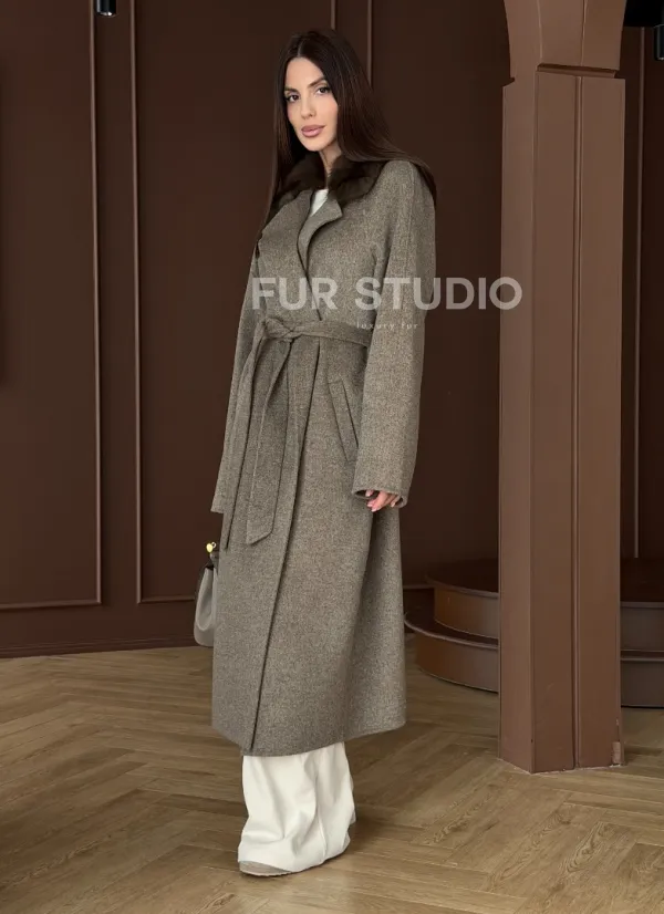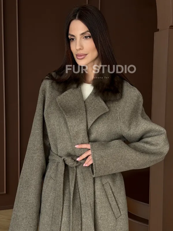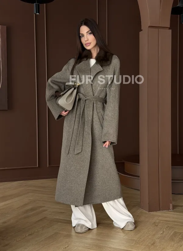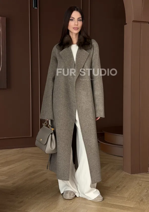 Пальто с воротником из соболя 102914