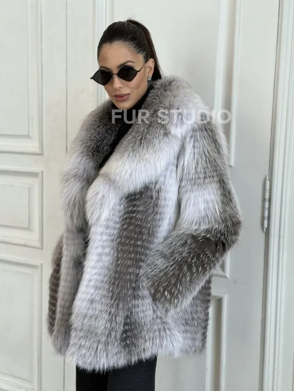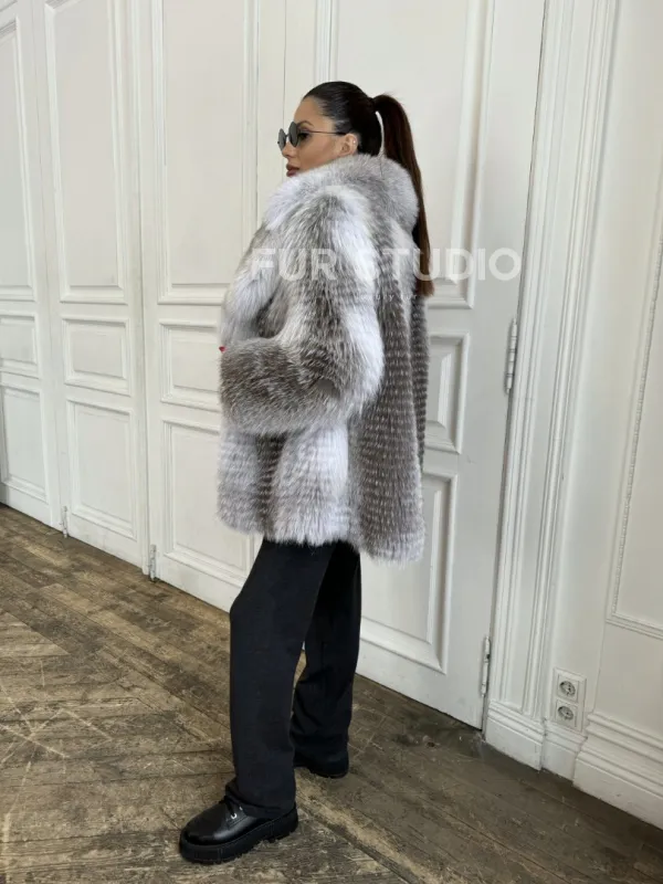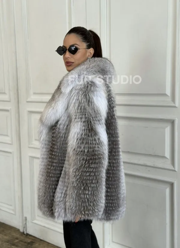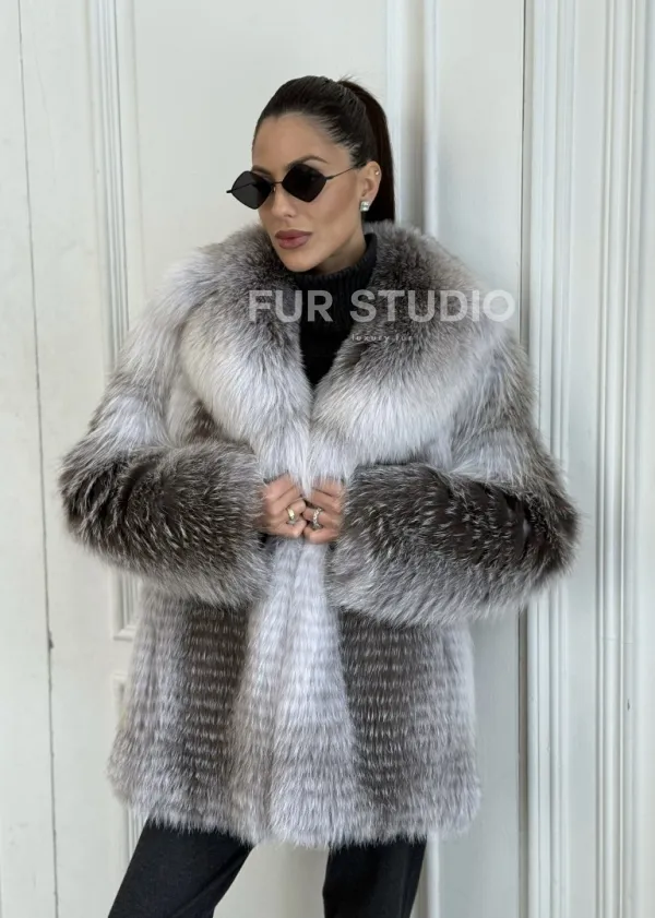 Шуба из меха арктической лисы - серая 100660