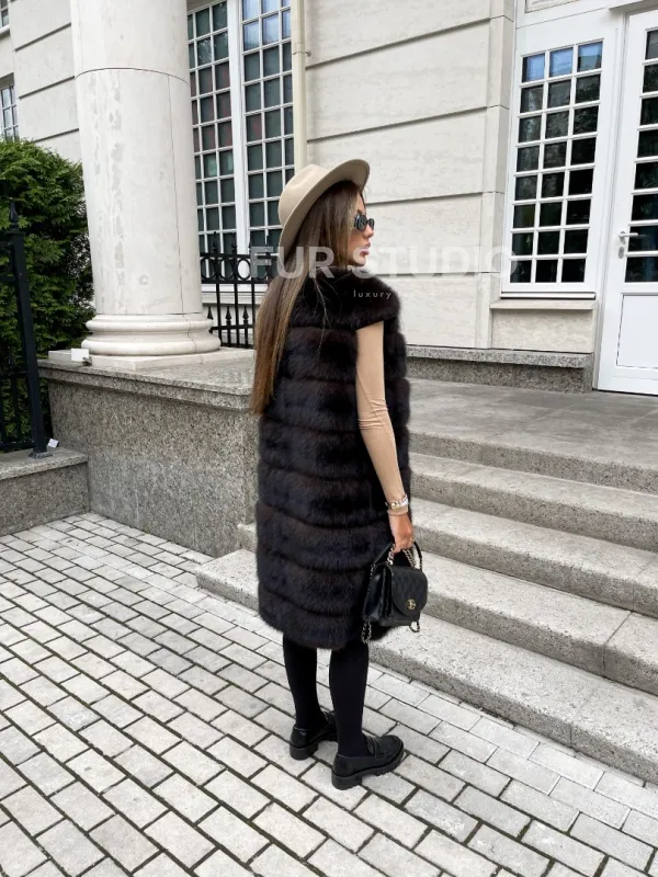Жилет из куницы в цвете соболь – выбор современных девушек с тонким вкусом. Меховой жилет это тренд сезона вне зависимости от времени года. Каждая модница должна иметь этот аксессуар в своем гардеробе. Качество изделия будет радовать владелицу долгие годы. Куница приятна на ощупь и практически невесома. Прямой крой зрительно удлиняет силуэт и скрывает недостатки фигуры.